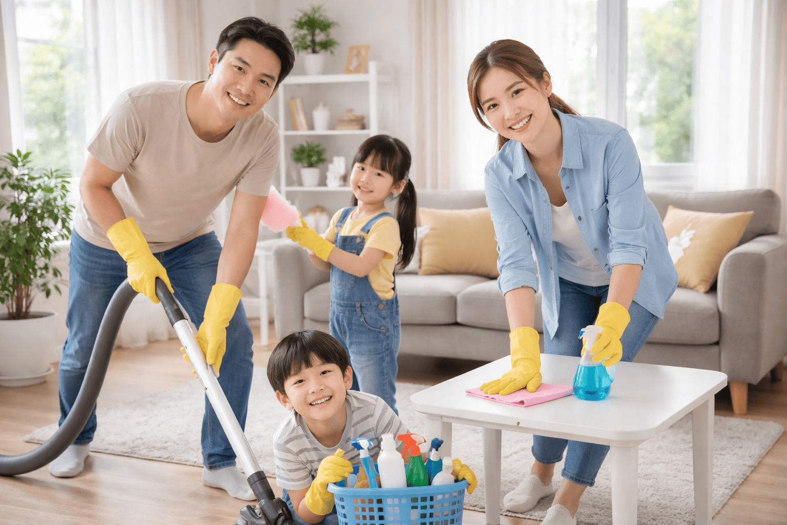 Bekerjasama dengan anggota rumah akan memudahkan kegiatan bersih-bersih menyambut lebaran.